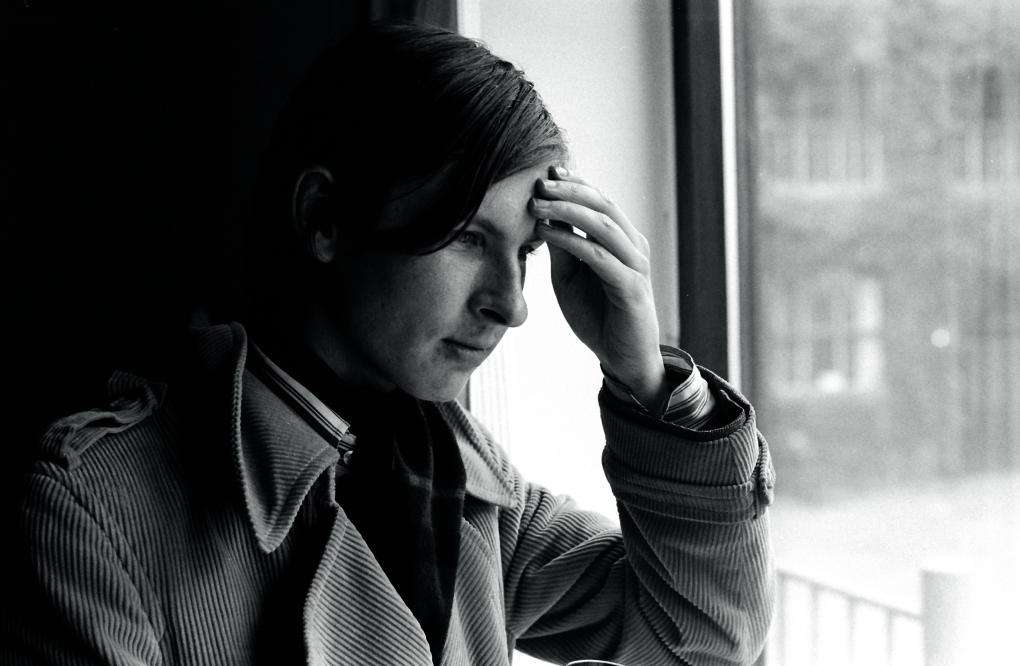 As a child, von Trier acted in a children's TV series, while he made his first public statement as an adult in 1976, at 19, with an article in a local newspaper [2]. The photo shows a young man who is already consciously constructing his artistic persona. The article is about Strindberg and his madness, and Edvard Munch, the painter, and his madness. Von Trier liked the idea of mad, suffering artists. The self-portrait of the artist as a young man, with a vampire-like drop of blood and Calvary in the background, shows how he saw, or imagined, himself [3], contrary to the nice young man in the photo taken from around the same time (c. 1975) [4].
