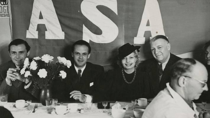 Ledelsen i ASA fra venstre mod højre: Lau Lauritzen Jr., Henning Karmark, Alice O’Fredericks og John Olsen. Lars Martin Sørensens grundige bog bringer af gørende nyt frem om den danske filmbranche under Besættelsen. Foto fra bogen.