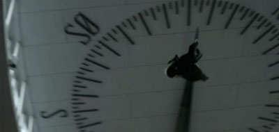 I kortfilmen 'Ung mand falder' er der en meget symbolsk location midtvejs i filmen (eksempel 4). Den psykisk ustabile hovedperson er på sin skole. Scenen er fotograferet i frøperspektiv, så vi flere gange ser loftet, hvor der er et kæmpestort kompas. Det er et vink om, at hovedpersonen mangler retning i sit liv. Han tåger rundt og mangler et "mentalt kompas".