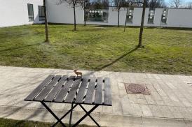 Når I skal optage, bør I beskære billedet, så man kun ser hagen lige forfra. Vend billedet om bagefter og beskær evt. ekstra, hvis omgivelserne kommer med. Det kan du enten gøre direkte på mobilen eller i et klippeprogram.
