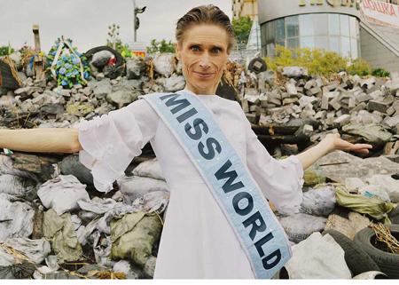 Nu er navnet kogt ned til det muligvis mest danske, man kan forestille sig: Nielsen. Denne Nielsen har forklædt sig som Miss World og er rejst til Ukraine på en selverklæret fredsmission for at sprede budskabet om fred og tolerance i det turbulente land. Men han – eller hun – er ikke rejst alene: sammen med sit produktionsselskab er turen blevet dokumenteret, og resultatet er filmen "Miss World in Ukraine".