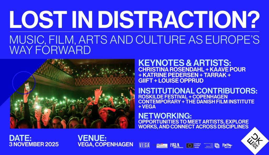 I en tid præget af digitale distraktioner, teknologiske forandringer og sociale brudflader er konferencen Lost in Distraction? Music, film, arts and culture as Europe’s way forward en invitation til at genoverveje kulturens rolle: ikke som pynt, men som fundament for fornyelse, sammenhængskraft og bæredygtige fællesskaber.